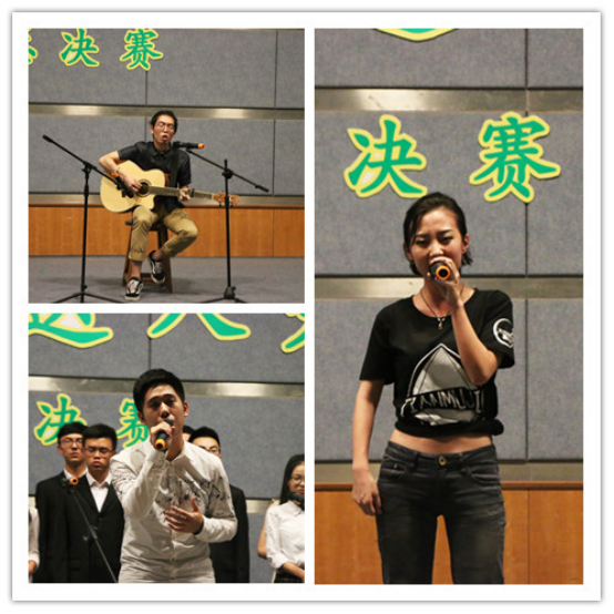 比赛正式开始后,由16支来自不同校区、不同楼栋的歌唱达人按照之前的抽签和分组顺序依次上台演唱,16组选手被分成四组,每组演唱完后由评委评分并商议后晋级一名,最后晋级的四名再由楼管会组成的大众评审现场投票,评出当晚一等奖,而其它奖项则按分数依次选出。第一组中北24首先以歌伴舞的形式表演了一段凄美的爱情故事《飞鸟和鱼》征服了评委而顺利晋级;第二组兰5兰6自弹自唱的《20岁的某一天》以清新脱俗的民谣风格打动了观众和评委,并赢得了现场阵阵掌声,也获得了一个晋级名额;第三组比赛后,由于实力强劲,比赛一度难分高低,评委也产生了分歧,最后经过现场商议后由来自江北1舍的《虎口脱险》兄弟演唱组合因舞台的表现力和感染力得到了晋级的机会;最后一组中,由北1北9带来的《月光》唱出了毕业游子对母校的眷念,也送上了他们对毕业学长学姐们深深的祝福而获得了最后一个晋级名额,而由评委代表徐阔老师带来的一首《I believe》嗨翻了全场,其高亢亮丽的嗓音和扎实的演唱功底征服了现场观众。比赛中还穿插的天木槿音乐社团、大自委文宣中心的歌曲和舞蹈,精彩的演出,把比赛气氛一次次推向高潮……